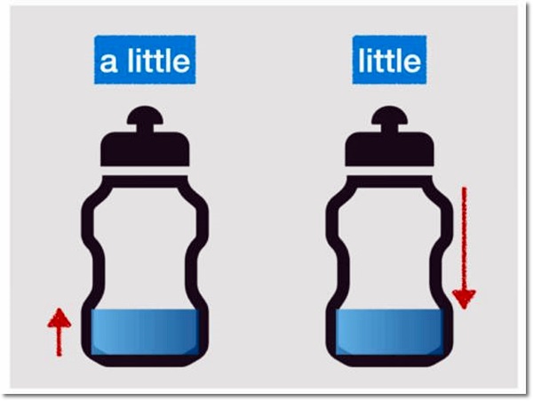 a little이 사용되는 경우 "약간의 물이있다"와 같이 긍정적 뉘앙스가 됩니다.